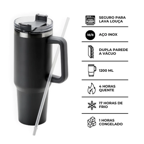 Adquira agora seu Copo Térmico Modelo Stanley 1200ml e transforme a maneira como você aprecia suas bebidas. Seja para café, chá, suco ou água, este copo é a escolha ideal para manter o sabor e a temperatura das suas bebidas em qualquer ocasião.